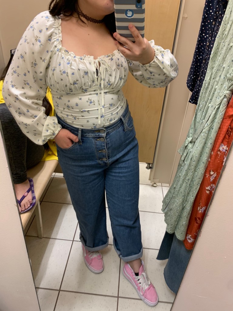 Women’s Floral Print Long Sleeve Square Neck Woven Top – Wild Fable Ivory